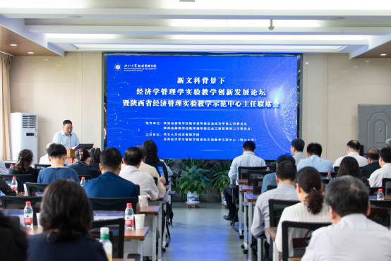 戚桂杰教授、张小岗教授、田高良教授及茹少峰教授分别以“新文科背景下经管学科实验教学发展要义”、“新文科视角下虚拟仿真实验教学一流课程建设”、“数智时代区块链驱动财务共享创造价值”及“夯实基础,创新意识培养的实践实验教学体系”为题做了主题报告。来自陕西各高校的经管学院院长及实验教学示范中心负责人围绕新文科背景下的实验教学开展了充分的研讨,并就进一步展开交流合作达成共识。