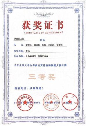近日,“全国大学生海南自贸港旅游创新大赛”决赛成绩揭晓,来自复旦大学、中山大学、四川大学、南开大学、厦门大学等全国382所高校参加比赛,1851支参赛队伍,经激烈角逐,共30支队伍进入决赛。永利集团官网旅游管理系师生应邀于6月5日前往海南现场展示和答辩,展现我校风采,最终获得优异成绩。