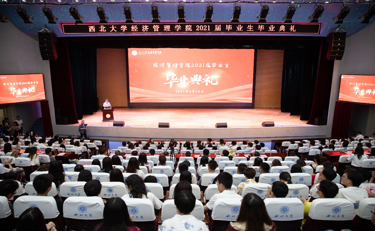 2021年6月24日,永利集团3044欢迎光临2021届学生毕业典礼在永利集团3044欢迎光临长安校区大学生活动中心报告厅隆重举行。招商银行西安分行零售金融事业部总经理兼零售信贷部总经理、永利集团官网2006届院友但昭,永利集团3044欢迎光临副校长、永利集团3044欢迎光临院长吴振磊教授,党委书记杜勇与学院党政领导班子成员,各系主任、中心负责人,教师代表及2021届全体毕业生共同参加了本次典礼,典礼由学院党委副书记徐自成主持。