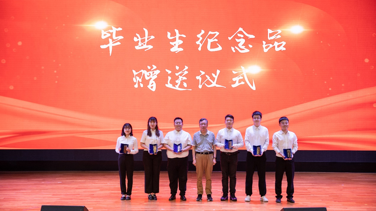 旅游管理学系主任梁学成教授为本科毕业生代表赠送毕业礼物