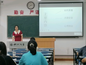 本次“基地学术课堂”的第三单元为“朗读者”,2021级经济学基地班本科郑育彤从时代背景、片段分享和心得体会三个方面诵读了经典著作《习近平谈治国理政》第三卷节选。