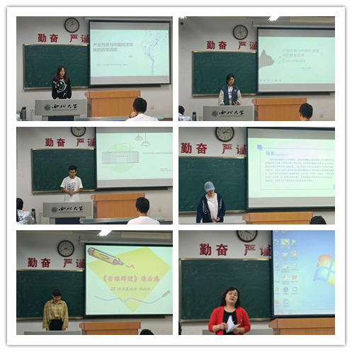 2021年9月29日下午,经济学系“基地学术课堂”活动第九十四场在长安校区1号楼1105教室举行。经济学系19、20、21级本科生参加了本次活动。“基地学术课堂”的第一单元的“文献研习”第一部分由2019级经济学基地班本科生康宇曦讲解路风教授的《产业升级与中国经济发展的政策选择》。康宇曦从产业升级的背景、中国产业升级的任务(包括相关经济政策、产业升级的具体内涵)、产业升级视角下的经济政策、结论与启示等四个方面讲解了这篇文章。2020级经济学基地班本科生刘旭静从文章背景、框架、重要内容及主要观点、研究方法等方面评论了这篇文章。