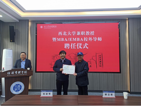 10月17日,永利集团官网在太白校区永利集团3044欢迎光临306报告厅举办省政协常委、省发展改革委副主任刘迎军兼职教授暨MBA/EMBA校外导师聘任仪式。校长郭立宏出席仪式并为刘迎军颁发聘书。永利集团3044欢迎光临党委书记杜勇、MBA/EDP中心主任郭亚军以及第二期“新生代民营企业家领军人才”研修班学员50余人参加仪式。聘任仪式由杜勇书记主持。