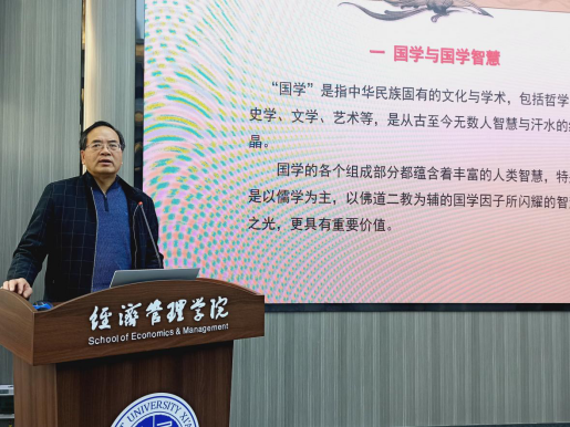 王双怀教授从对于国学智慧的定义出发,详细讲述了国学的各个组成部分,以及国学所存在的重要价值。王老师讲课风趣幽默,引经据典,以儒家经典《孝经》为例,同时阐述了佛教和道教的概念。王双怀教授指出,国学智慧对于提升管理者的智商和情商具有重要作用。每一个管理者都应该努力保持博学审思、修身养性、同舟共济、勤政务本、忠诚勇敢、公正无私、知人善任、匡谏纳谏、廉洁清明、利国利民、居安思危、鞠躬尽瘁这些良好的工作作风。最后,王老师对大家在日常生活中如何撷取国学智慧提出了行之有效的建议,希望这对于广大管理者们的成长具有重要的意义。