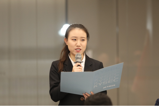 第二届实验班学员代表夏爽同学发言对实验班高规格配置、高水平师资、高标准要求表示感谢,表示在学习中将把理论与实践充分结合,与开源证券一起“牵手北交所,共迎新起点”。