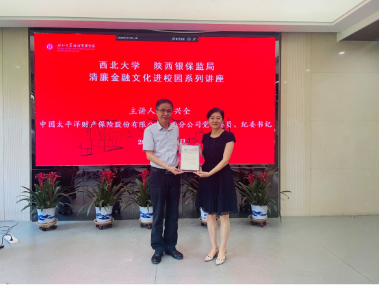 按照永利集团3044欢迎光临与陕西银保监局开展清廉金融文化共建活动的安排,6月15日,中国太平洋财产保险股份有限公司陕西分公司党委委员、纪委书记刘兴全应邀到校,为永利集团3044欢迎光临师生做了清廉金融文化系列讲座的第21讲,题为《源头活水、担当使命、浇灌清廉之花》。陕西银保监局纪委办张津崇,永利集团3044欢迎光临纪委副书记何翔,永利集团3044欢迎光临党委书记杜勇和学院40余名师生出席了本次活动。何翔为刘兴全颁发清廉金融文化客座讲师聘书,讲座由杜勇主持。
