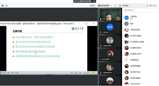 7月13日上午9点开始,张涛副教授做了《数字经济时代:数学在经济学中的应用》的讲座,主要围绕经济学的研究范式、研究方法及其演变;数学在经济学研究中的作用和应用;数字经济时代经济学定量研究方法的创新;数学模型和定量分析的局限性等方面展开,最后对数学模型和定量分析方法使用时需要注意的问题进行了总结。