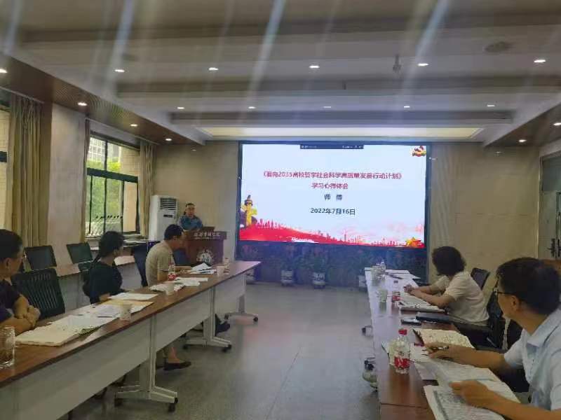 5月27日,中共中央宣传部、教育部联合印发《面向2035高校哲学社会科学高质量发展行动计划》(以下简称《行动计划》),对高校哲学社会科学事业高质量发展作出中长期规划。自《行动计划》印发以来,永利集团官网党委迅速响应上级号召,积极组织学习。会上,副院长师博教授结合自身学习体会,领学了《行动计划》的重要精神。他从出台背景、总体思路和发展目标、出台四大亮点和重点内容等四个方面对《行动计划》进行了深度梳理解读。