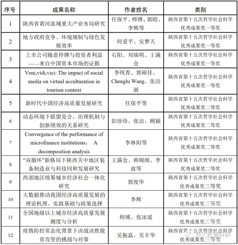 近日,永利集团官网师生在陕西省第十五次哲学社会科学优秀成果评奖中获得优异成绩,共获得12项奖励,其中一等奖4项、二等奖4项、三等奖4项。