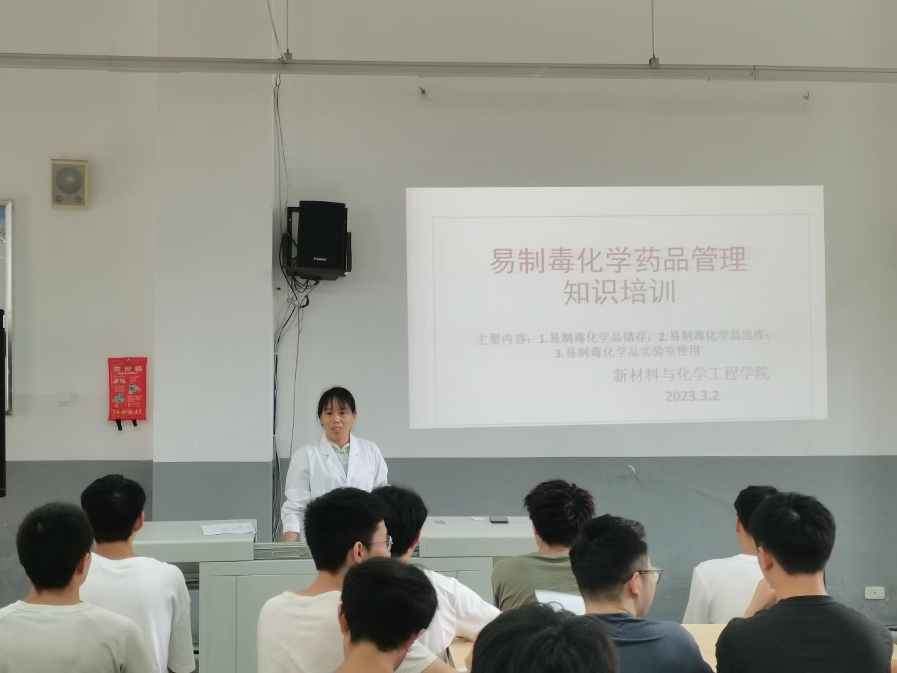 为进一步强化实验室易制毒化学品管理,切实抓好易制毒化学品在实验使用中的监管、登记工作,增强相关人员的使命感和责任感,强化措施,严格规范易制毒化学品的管理。2023年3月2日,pp电子模拟器官网实训室管理员邓晓容为学院学生代表开展了易制毒化学药品管理知识培训。