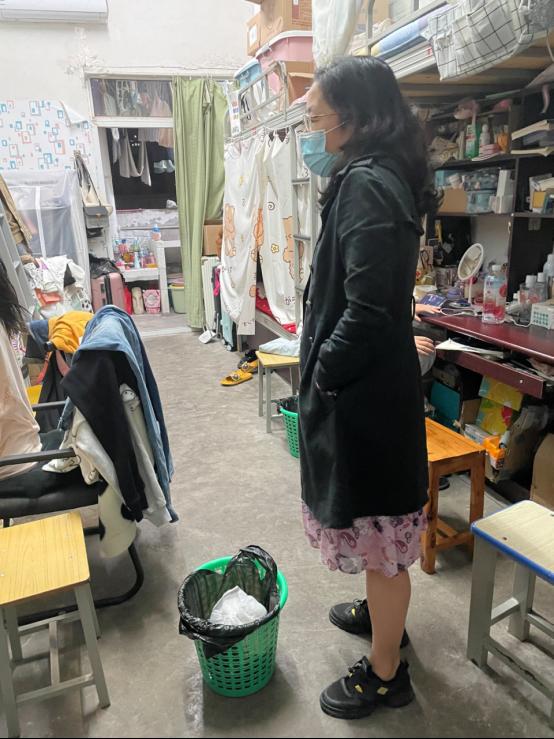 走访中,领导老师与同学们亲切交谈,关心了解同学们的生活和学习情况,倾听同学们在学习、生活等方面的情况,对同学们提出的关于物资缺少、药品不足等问题都进行了记录。21级应化一班有位同学急需药品,情绪很不稳定,而校内医务室暂时不能解决,唐利平老师一方面安抚学生,了解真实情况,另一方面找医生反映病情,唐梓峻老师马上想办法校外购买,并及时将药品送到学生手中,帮助学生解除病痛,学生十分感动。