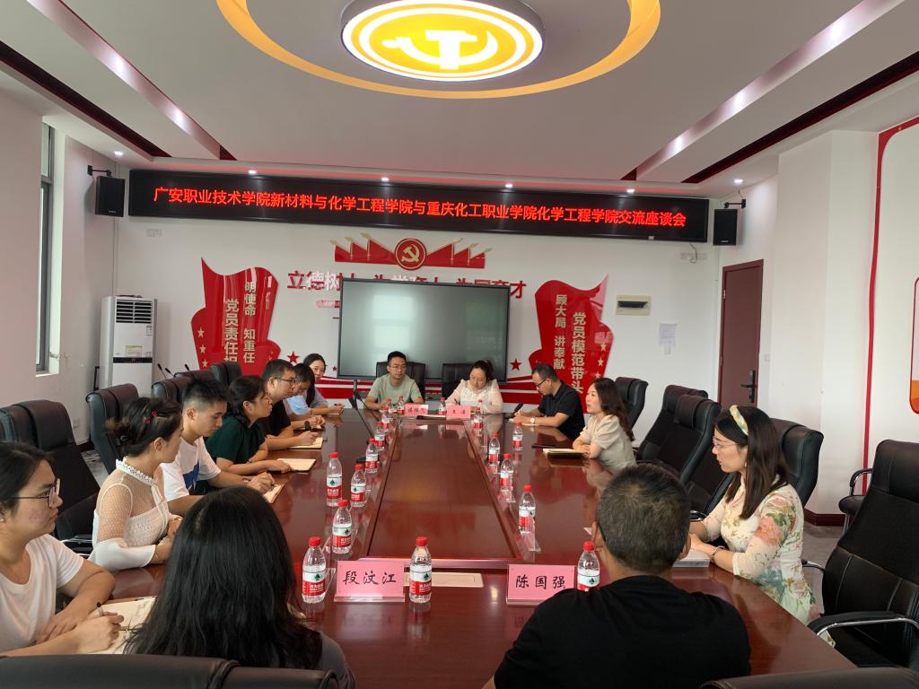 9月19日,为积极响应广职融圈行动计划,加强与兄弟院校的交流,pp电子模拟器官网院长唐利平携学院专任教师10余人赴重庆化工职业学院化学工程学院座谈交流。