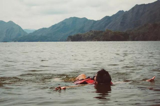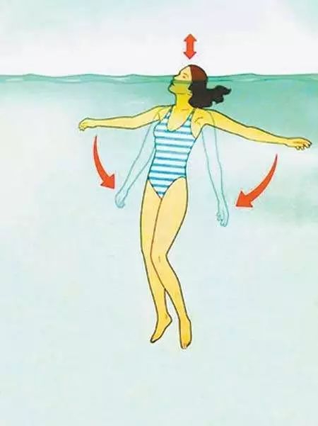 还有一种叫仰漂,屏住呼吸,头向后仰,放松肢体,双手双脚向两边,呈"大"字形摆开,呼吸时尽量用嘴吸气,用鼻呼气,千万别试图将整个头伸出水面,这是一个致命的错误。