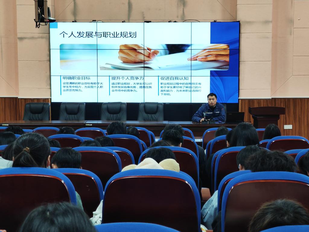 为助力学生明晰职业方向、优化职业规划,强化自我认知与竞争力,提升就业创业指导效能,12月3日下午,pp电子模拟器官网于致用楼紫金厅成功举办“企业家进课堂”职业生涯规划培训讲座。本次讲座特邀广安宏源化工有限公司人事经理傅元松主讲,学院2023级全体同学参与。